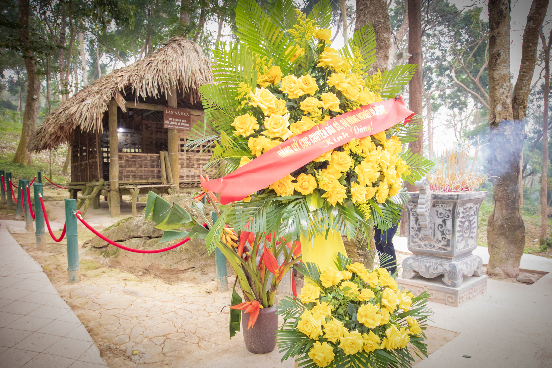 Tại đây, đoàn đã tổ chức lễ dâng hương tưởng niệm tại khu vực Lán Nà Nưa. Từ căn lán đơn sơ, giản dị, với những nhận định đúng đắn, những quyết sách kịp thời, về thời cơ cách mạng, Bác đã chỉ đường cho toàn Đảng, toàn dân, toàn quân ta tiến bước, tạo bước ngoặt có ý nghĩa lịch sử vĩ đại cho dân tộc Việt Nam chấm dứt hoàn toàn ách đô hộ của thực dân, bước vào kỷ nguyên mới - kỷ nguyên độc lập, tự do.