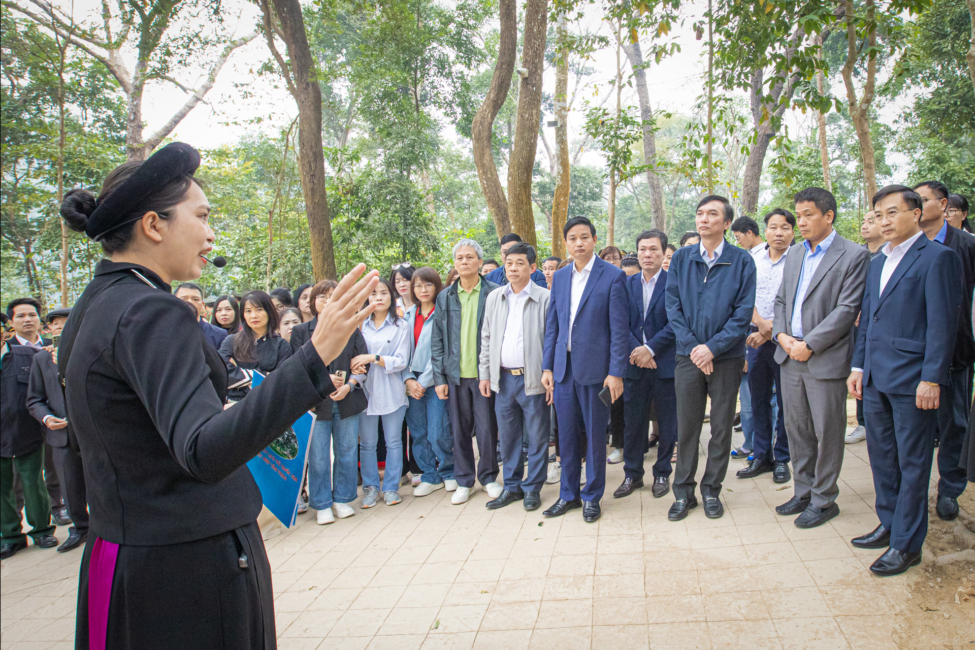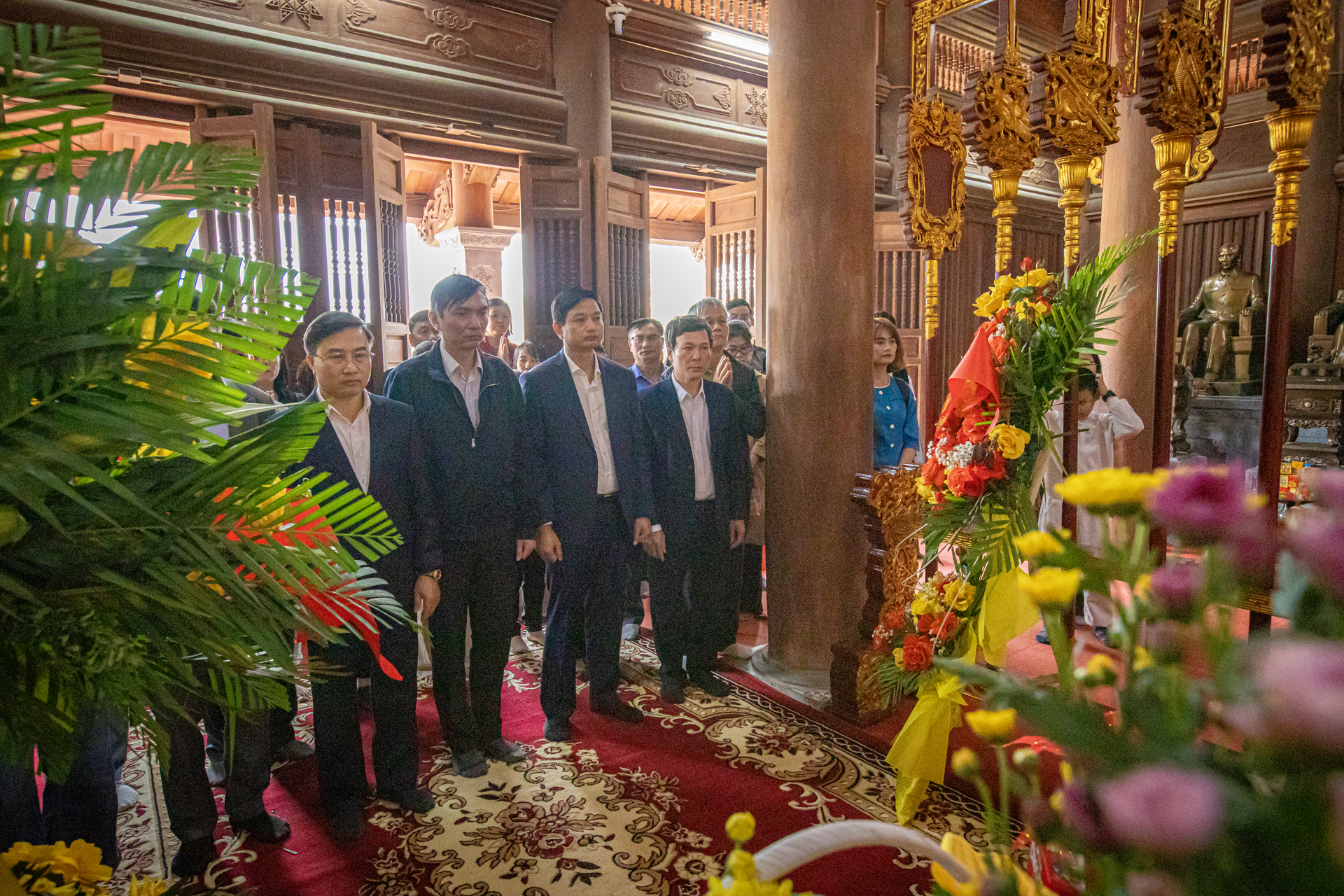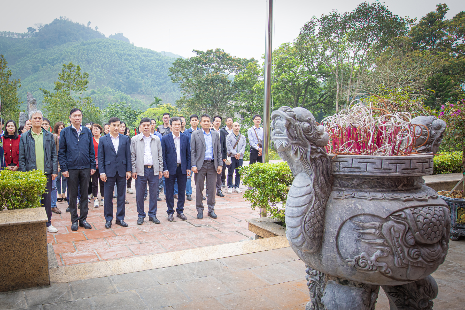 Tiếp theo chương trình, đoàn tham quan Đình Tân Trào, nơi từng diễn ra Quốc dân Đại hội ngày 16/8/1945 - sự kiện có ý nghĩa lịch sử đặc biệt, quyết định chủ trương Tổng khởi nghĩa giành chính quyền trong cả nước. Trong không khí trang nghiêm và thành kính, các đại biểu đã dành phút mặc niệm, bày tỏ lòng biết ơn sâu sắc đối với Chủ tịch Hồ Chí Minh, các bậc tiền bối cách mạng và những anh hùng liệt sĩ đã hy sinh vì sự nghiệp giải phóng dân tộc.