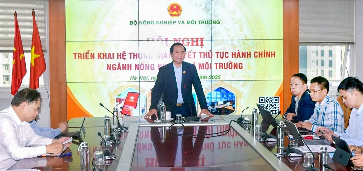Sáng 23/12, tại Hà Nội, Bộ Nông nghiệp và Môi trường tổ chức Hội nghị triển khai, tập huấn hệ thống giải quyết thủ tục hành chính ngành Nông nghiệp và Môi trường theo hình thức trực tiếp kết hợp trực tuyến, với sự tham gia của 34 Sở Nông nghiệp và Môi trường các tỉnh, thành phố cùng các điểm cầu UBND cấp xã trên toàn quốc. Hội nghị nhằm rà soát, chuẩn bị các điều kiện cần thiết để hệ thống chính thức đi vào hoạt động thông suốt, hiệu quả từ đầu năm 2026.